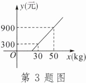 3.某航空公司规定,旅客乘机所携带行李的质量x(kg)与其运费y(元)由如图所示的一次函数图象确定,那么旅客可携带的免费行李的最大质量为()