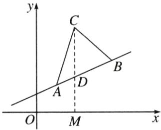 解:如图,作$CM⊥x$轴于$M$,交$AB$于$D$。$∵$点$C$的坐标为$(2,5)$,$∴D$的横坐标为$2$。把$x=2$代入直线$y=\frac{1}{2}x+1$,得$y=\frac{1}{2}×2+1=2$,$∴D(2,2)$。$∴CD=5-2=3$。$∴S_{\triangle ABC}=S_{\triangle ACD}+S_{\triangle BCD}=\frac{1}{2}×3×(4-1)=\frac{9}{2}$。