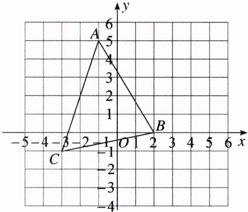 解:(1)$S _ { \triangle A B C } = 5 \times 6 - \frac { 1 } { 2 } \times 2 \times 6 - \frac { 1 } { 2 } \times 3 \times 5 - \frac { 1 } { 2 } \times 1 \times 5 = 14$。