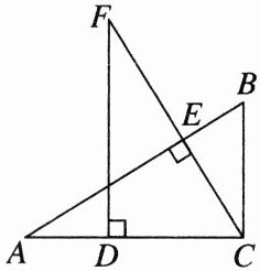 ∴ $ \angle A + \angle A C E = \angle F + \angle D C F = 90 ^ { \circ }$。