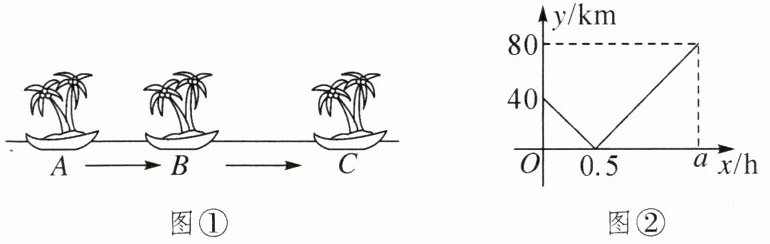 【活动过程】素材1:如图①,A,B,C三个海岛在同一条直线上,巡航船从A岛出发沿直线行驶,航行速度一直保持不变,经过B岛驶向C岛,执行巡航任务.