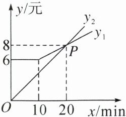 将$(10,6)$和$(20,8)$分别代入$y_1 = kx + b$,得$\begin{cases}10k + b = 6,\\20k + b = 8,\end{cases}$解得$\begin{cases}k = 0.2,\\b = 4,\end{cases}$$\therefore$