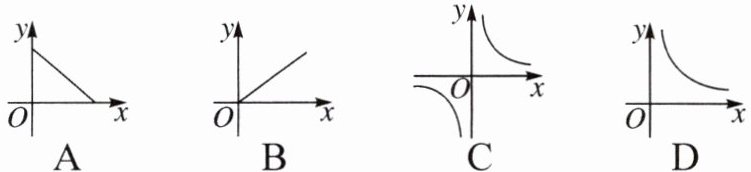 例1 已知矩形的面积为5,它的长y与宽x之间的关系用图象大致可表示为()