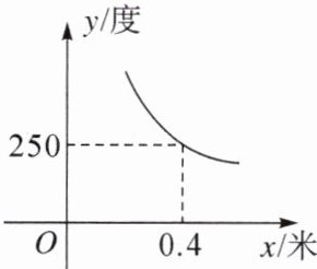 1. 近视眼镜的度数y(度)与镜片焦距x(米)之间有如图所示的反比例函数关系,若配制一副度数小于200度的近视眼镜,则焦距x的取值范围是()