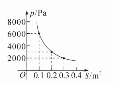 (2)当$S=0.2m^{2}$时,$p=\frac {600}{0.2}=3000(Pa)$,所以面积为$0.2m^{2}$时,压强是3000Pa.