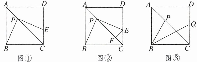 (1)如图①,过点$P作PE\perp PB交边DC于点E$.当点$E在边CD$上时,求证:$PB= PE$.
