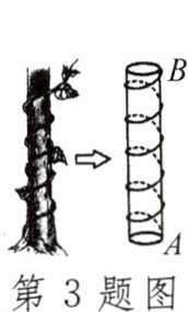3.我国古代有这样一道数学问题:“枯木一根直立地上,高二丈,周三尺,有葛藤自根缠绕而上,五周而达其顶,问葛藤之长几何?”题意是:如图,把枯木看作一个圆柱体,因一丈是十尺,则该圆柱的高为20尺,底面周长为3尺,有葛藤自点A处缠绕而上,绕五周后其末端恰好到达点B处.则问题中葛藤的最短长度是____尺.