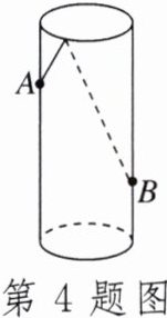 4.如图,透明的圆柱形容器(容器厚度忽略不计)的高为12cm,底面周长为10cm,在容器右侧内壁离容器底部3cm的点B处有一饭粒,此时一只蚂蚁正好在容器左侧外壁,且离容器上沿3cm的点A处,则蚂蚁吃到饭粒需爬行的最短路程是____.
