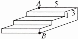 5.如图是一个三级台阶,它的每一级的长、宽和高分别等于5dm,3dm和1dm,A和B是这个台阶的两个相对的端点,A点上有一只春蚕,想到B点去吃可口的桑叶.这只春蚕从A点出发,沿着台阶面爬到B点,请你求出它爬行的最短路程.