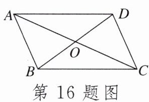 16.如图,四边形ABCD的对角线相交于点O,$AO= CO$,请添加一个条件____(只添加一个即可),使四边形ABCD是平行四边形.