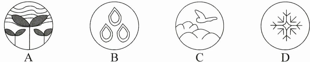 1. 中国“二十四节气”已被联合国教科文组织正式列入《人类非物质文化遗产代表作名录》,下列四幅作品分别代表“立春”“谷雨”“白露”“大雪”,其中是中心对称图形的是 ()