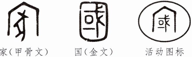 3. 小优负责班级本次主题活动的板报制作,他根据“家”的甲骨文字形和“国”的金文字形,设计了一幅图标,请你说说他的创意。(3分)
