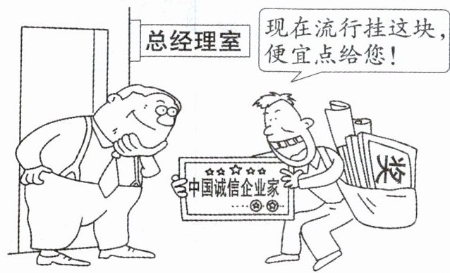 ②诚信不是买来的,虚假的“诚信”经不起时间的考验(对总经理)。弄虚作假害人害己,终究逃不脱法律的制裁(对售牌匾者)。