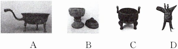 2.“朔气传金柝”中的“金柝”是古时军中白天用来烧饭,夜里用来打更的器具,三足一柄。下列图示属于“金柝”的一项是(