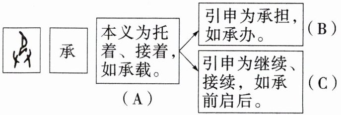 (4)根据“承”字意义的演变图,为“传承”的“承”选择正确的解释(