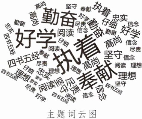示例二:《钢铁是怎样炼成的》,选取执着、理想、高尚。保尔以“解放全人类”为理想,在双腿瘫痪、双目失明的情况下仍未放弃“战斗”,而是以文学创作来实现理想,在母亲和妻子的帮助下写成了《暴风雨所诞生的》一书。保尔的执着让我明白,人生路上所遇到的磨砺会让我们变得更加坚强,我们应坚定理想信念,不断奋斗。