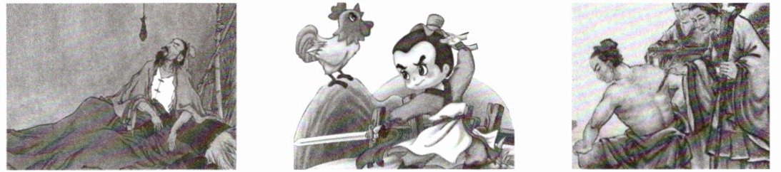 3. 在“自强不息”故事会中,小优收集到三幅图,每幅图都暗含了一个励志的成语。请你写出这三个成语中的任意两个。(2分)