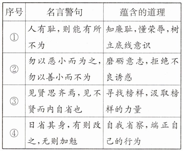 2. (山东枣庄期末)中华文化博大精深,一些名言警句寓意深刻,为我们做人做事留下了宝贵的启迪。下表中的名言警句与其蕴含的道理相符的是 (