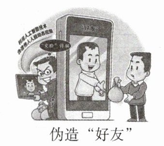 2. 观察漫画《伪造“好友”》,运用法律知识回答问题。