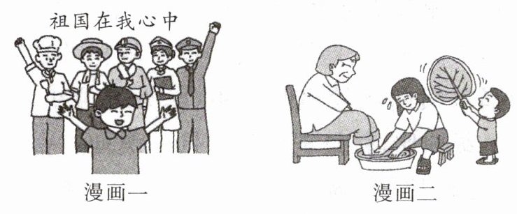 (1)漫画一:精忠报国、振兴中华的爱国情怀。漫画二:孝老爱亲。