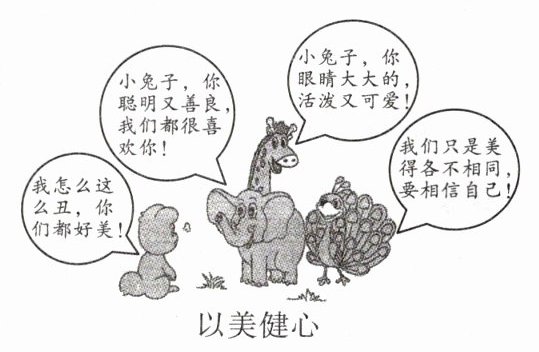 小兔子的说法是自卑的表现,是错误的。①自信让人乐观坚定。自信是一种“我能行”的信念,正是这种“我能行”,让我们充满希望和力量,面对困难和失败不轻言放弃,朝着既定目标勇毅前行。②自信让人远离自负与自卑。自负表现为过高地估计自己,自以为是,好高鹜远。自卑表现为轻视自己,认为自己不如别人,低估自己的能力,不敢尝试。自信表现为能够实事求是地看待自己,坦然面对真实的自己,从容应对学习和生活中的各种问题。③自信并非凭空而来。自信源于我们在成长过程中积累的实力,源于和他人交往中获得的肯定,源于丛社会稳定发展、国家繁荣富强中获得的安全感、成就感和自豪感。