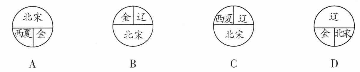 5. 下列能大致反映北宋与少数民族政权并立的示意图是 ()