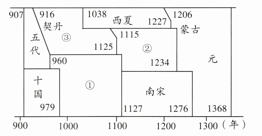 5. 下面为五代十国至元朝历史的演变示意图,对图中①②③所示朝代解释准确的是()
