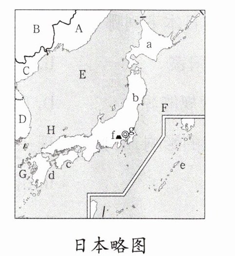3. 日本地形以____、____为主,图中f是____山,它是著名的活火山。日本多火山、地震是因为日本位于____板块和____板块的交界处。