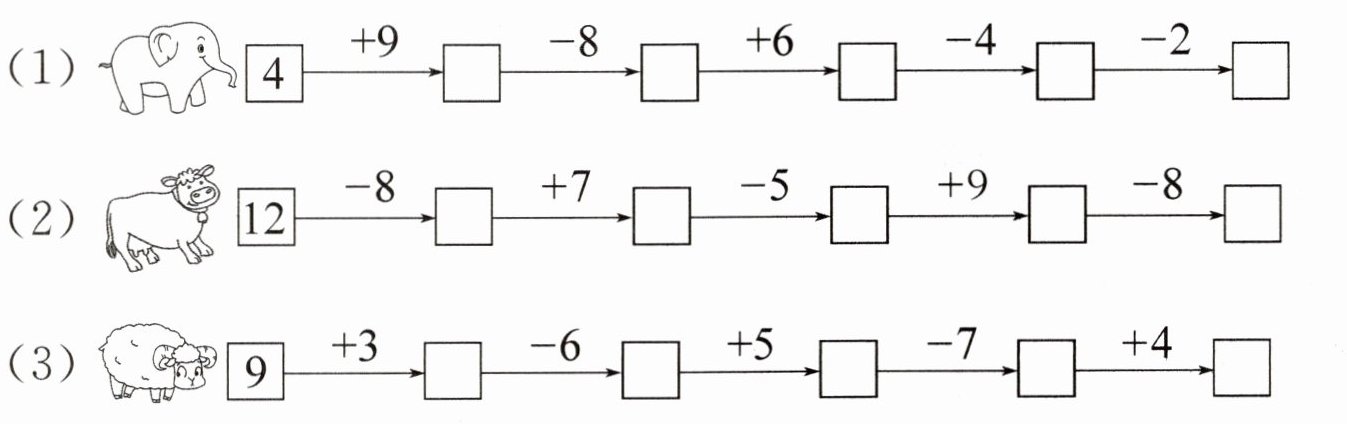 (3)明明要做14道口算题,他已经做了9道,错了2道,他还剩()道没有做。