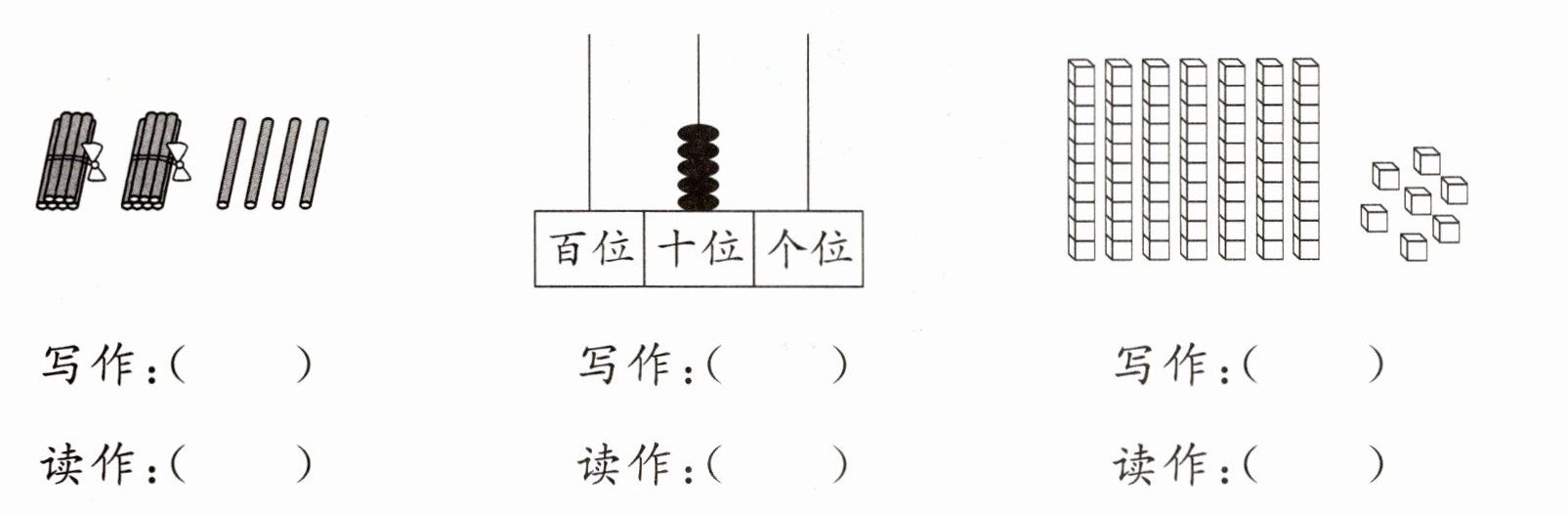 1. 看图写数读数。