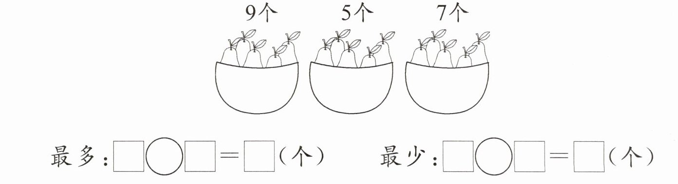 (3)下面的梨有两筐是小猴的。小猴最多有多少个?最少呢?