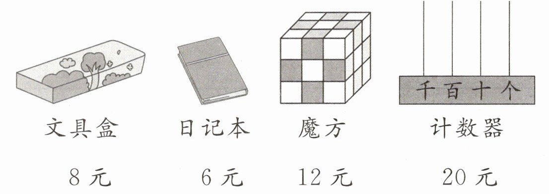 (1)小飞买一个文具盒和一本日记本,一共用去多少元?