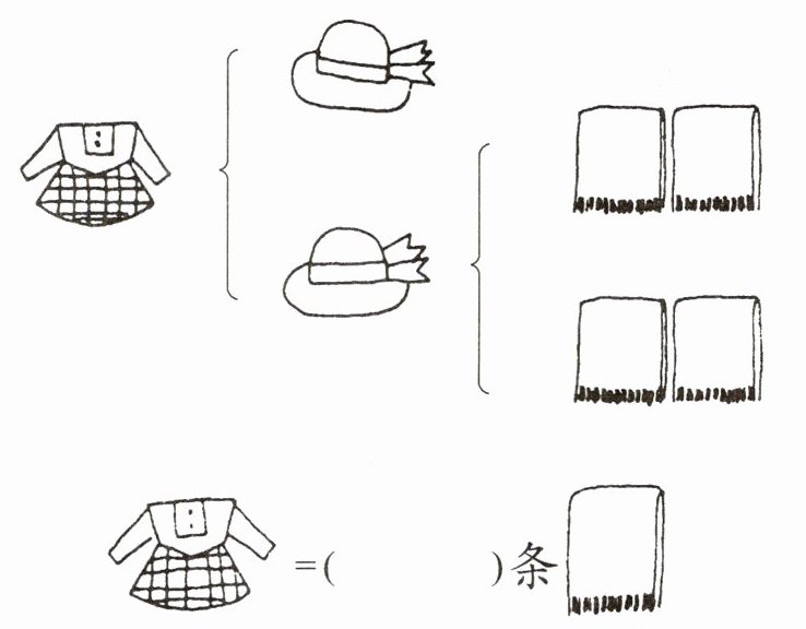 解析:因为1件衣服的价钱= 2顶帽子的价钱,1顶帽子的价钱= 4条毛巾的价钱,即2顶帽子的价钱= 8条毛巾的价钱。所以买1件衣服的钱可以买8条毛巾。