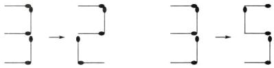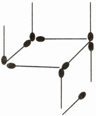 5. 下图所示的是一个倒放着且缺一条腿的椅子,请你移动2根火柴棒把椅子正过来。