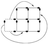 3. 下面是用火柴棒摆出的“品”字,共有3个小正方形。请移动其中的3根火柴棒,使它含有5个正方形。