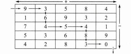 1. 下面是一个数学迷宫,请你从左上角的“9”进迷宫,从右下角的“0”出迷宫。如果你沿左、右方向走,遇数就用加法算;如果你沿上、下方向走,遇数就用减法算。最后算到0,才能出迷宫。