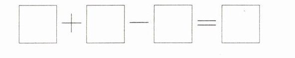 观察发现 $ 1 + 4 = 2 + 3 $,因此 $ \boxed{1} + \boxed{4} - \boxed{2} = \boxed{3} $。(还有其他填法)