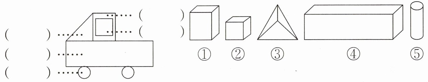 5. 说一说,左图可以由右边哪些物体描出来。(圈一圈)