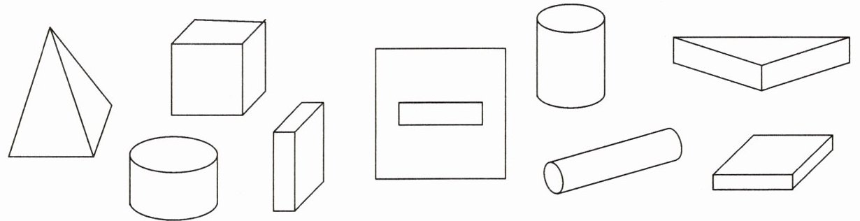 8. 下面的图形是由哪些物体描出来的?把编号填在()里。