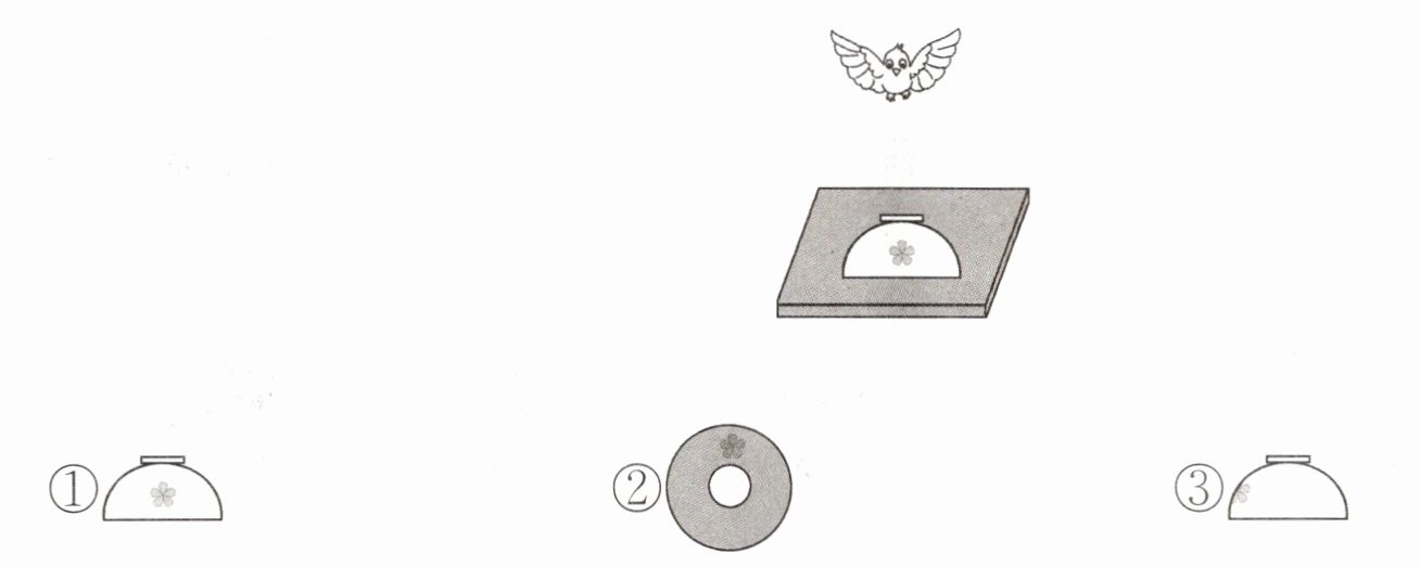 (1)桌面上倒扣着一个碗,小鸟飞到上面,看到的是()。