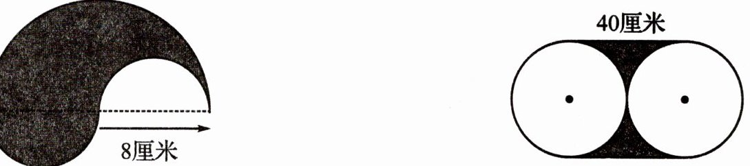3.14×82÷2=100.48(平方厘米) 40²−3.14×(40÷2)²=344(平方厘米)