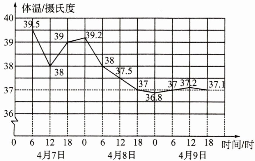 (2)这位病人的体温最高是()摄氏度,最低是()摄氏度。