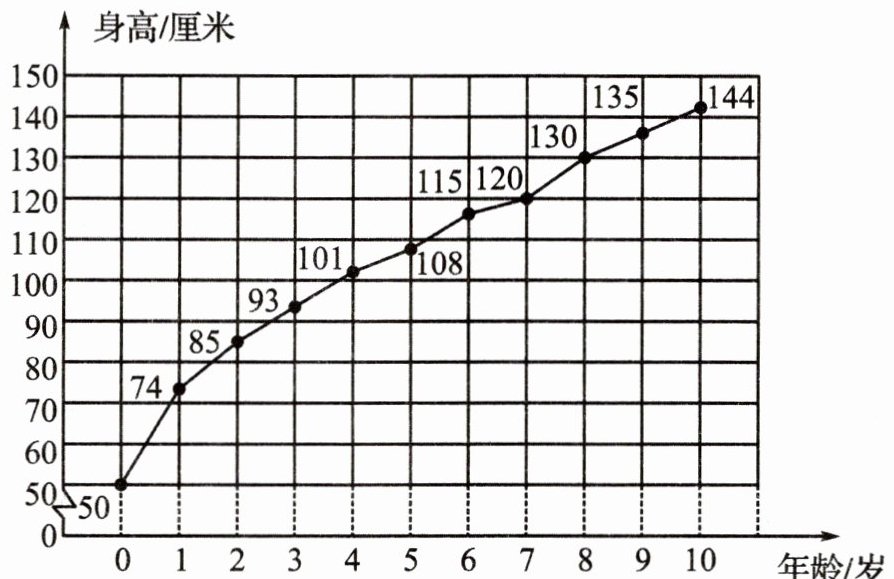 1. 下面是陈明0~10岁的身高统计图,看图完成填空。