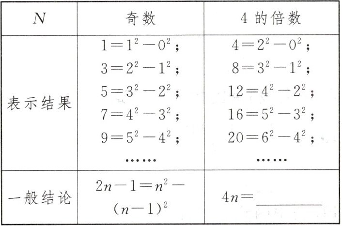 15. (2024·安徽)数学兴趣小组开展探究活动,研究了“正整数 $N$能否表示为 $x^{2}-y^{2}$($x,y$均为自然数)”的问题.