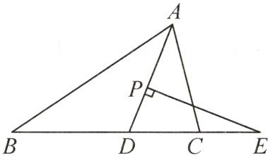 15. 如图,在△ABC 中,∠ACB > ∠B,AD 平分∠BAC,P 为线段 AD 上的任意一点,EP⊥AD 交直线 BC 于点 E.