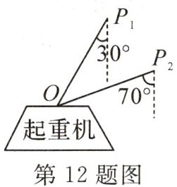 12. 新考向 真实情境 如图,这是一台起重机的工作简图,前后两次吊杆位置 $ OP_1 $,$ OP_2 $ 与吊绳的夹角分别是 30°和 70°,则吊杆前后两次的夹角∠$ P_1OP_2 $ =(