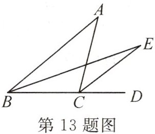 13. 如图,在△ABC 中,∠ABC = 40°,∠ACD = 76°,BE 平分∠ABC,CE 平分△ABC 的外角∠ACD,则∠E =