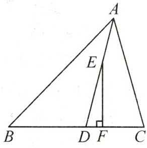 2. 如图,在△ABC 中,∠B < ∠C,AD 平分∠BAC,E 为 AD(不与点 A,D 重合)上任意一点,EF⊥BC 于点 F. 若∠B = 46°,∠DEF = 14°,求∠C 的度数.