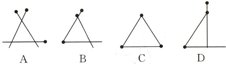 1. 下面是小强用三根火柴组成的图形,其中符合三角形概念的是(