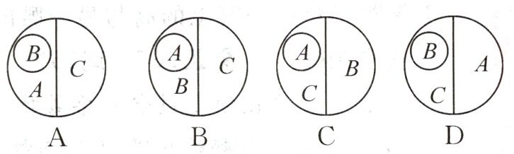5.(教材P3图改编)用A表示等边三角形,B表示等腰三角形,C表示三边都不相等的三角形,则下列四个分类图中,能正确表示它们之间的关系的是(